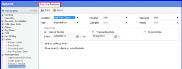 Reports > Management > Practice Analysis